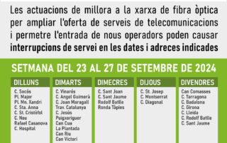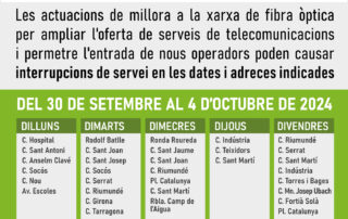 Avís d’afectació al servei de fibra òptica del 30 de setembre al 4 d’octubre de 2024